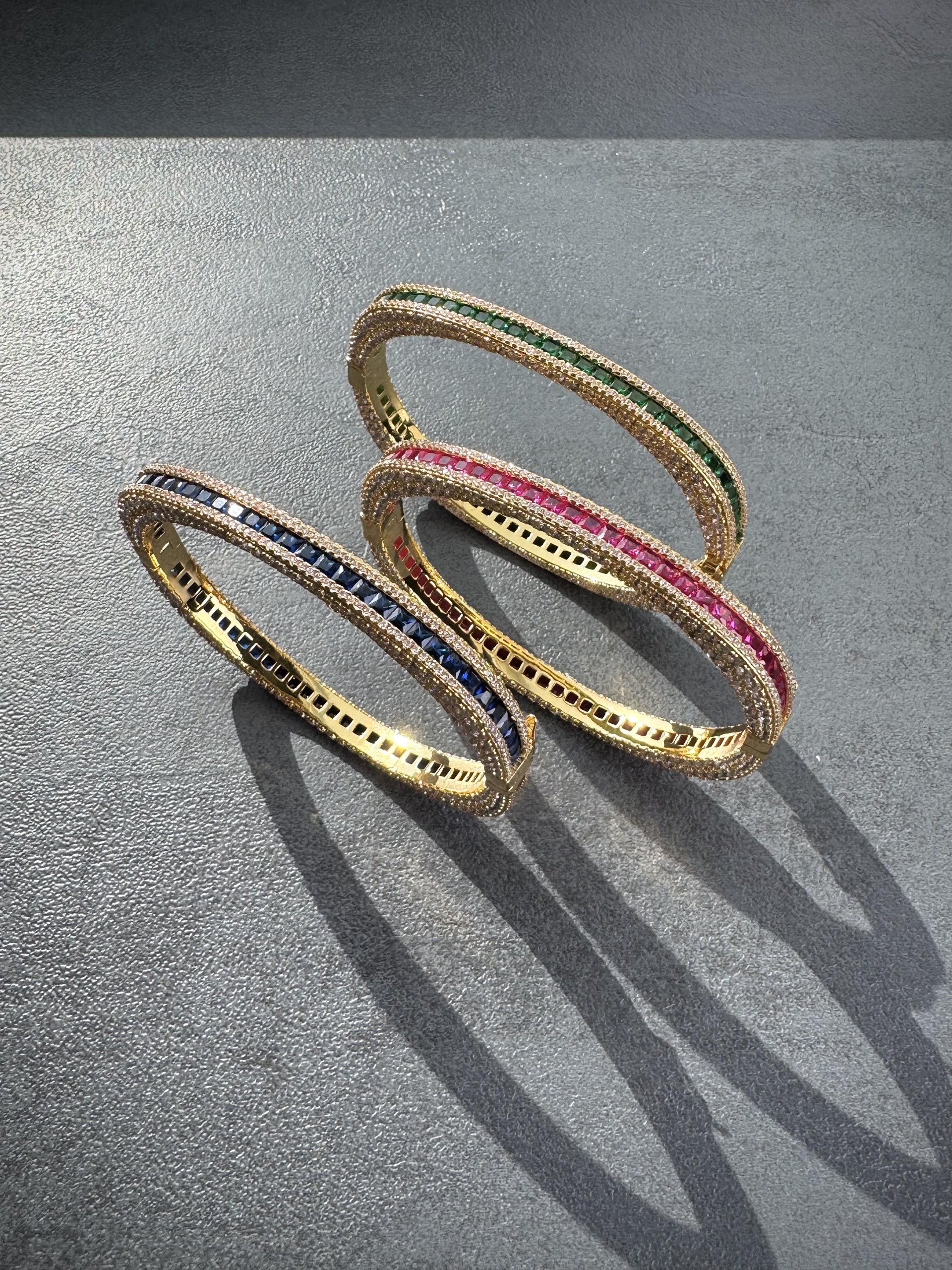 Copper bracelets for woman with diamondlite stones in yellow gold color with different stone colors