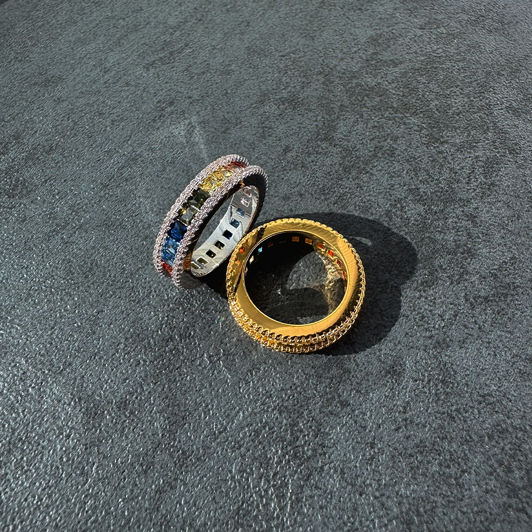 Elevate your style with this exquisitely crafted rainbow eternity ring, designed to embody timeless elegance and modern brilliance. The ring features meticulously set rainbow DiamondLite stones encircling the band, creating a luxurious and sophisticated look with vibrant, multicolor sparkle from every angle. Precision craftsmanship ensures a smooth, comfortable fit while enhancing durability and long-lasting shine.