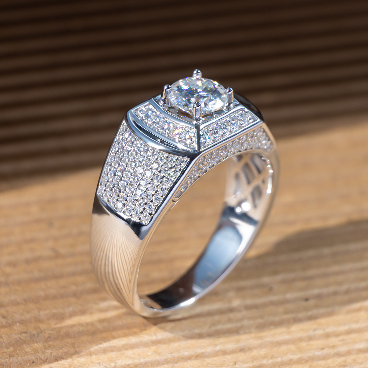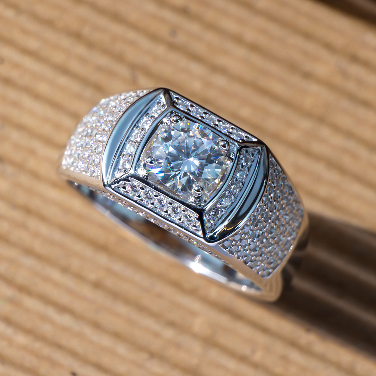 Take your style to the next level with a ring designed for maximum impact. This masterpiece is crafted from high-grade 925 Sterling Silver and is completely “iced out” with shimmering pavé accents. At its heart sits a brilliant Lab-Moissanite center stone, renowned for its superior “fire” and rainbow brilliance that outshines even the rarest diamonds.