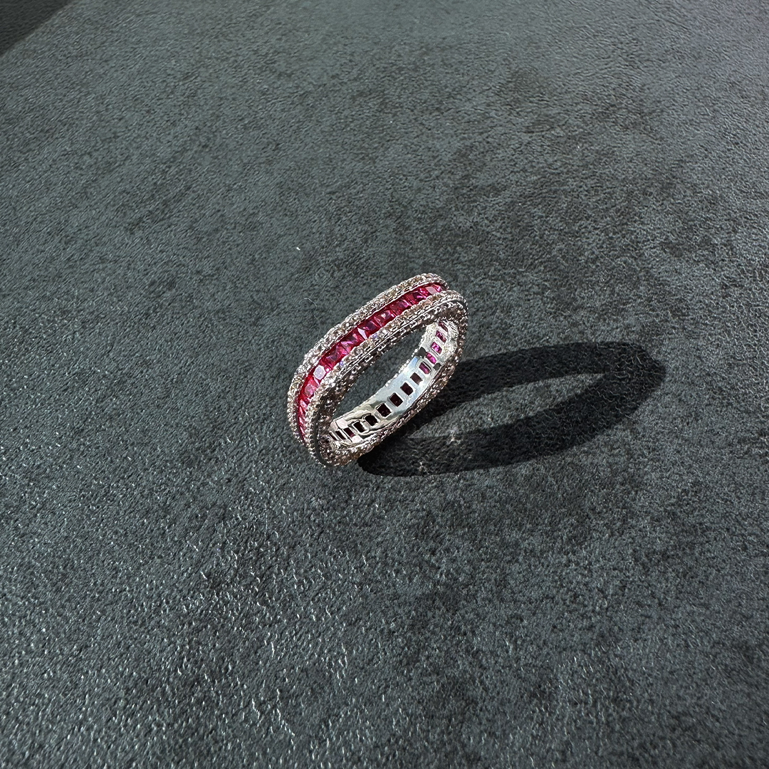 Elevate your style with this exquisitely crafted eternity band ring, designed to deliver timeless elegance and modern brilliance. The ring features a continuous row of deep blue DiamondLite stones set seamlessly around the band, creating a bold and sophisticated look with exceptional sparkle. Precision craftsmanship ensures a smooth, comfortable fit while enhancing durability and long-lasting shine.
