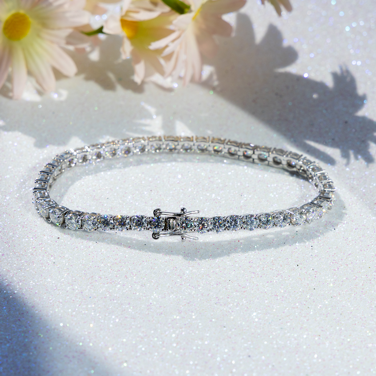 The design embodies a classic minimalist luxury aesthetic, making it an essential accessory for bridal wear, formal evening events, or adding a touch of prestige to your everyday style. Available in stone sizes of 2mm, 3mm, 4mm, and 5mm diameters and lengths ranging from 15.5cm to 19cm, this piece is engineered for security and comfort. It features a high-security integrated box clasp with a double safety wing to ensure it stays gracefully on your wrist, making it the perfect gift for anniversaries, weddings, or a milestone celebration.