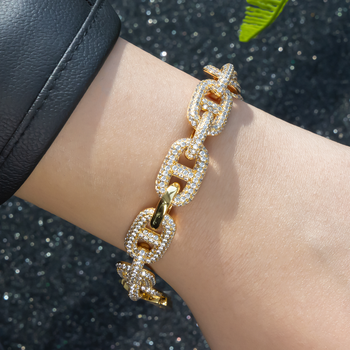 Women’s Copper Link Bracelet with Sparkling Diamondlite Stones in Gold Tone and Silver Tone, Elegant Statement Jewelry