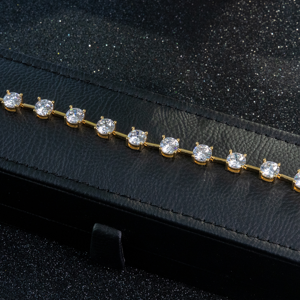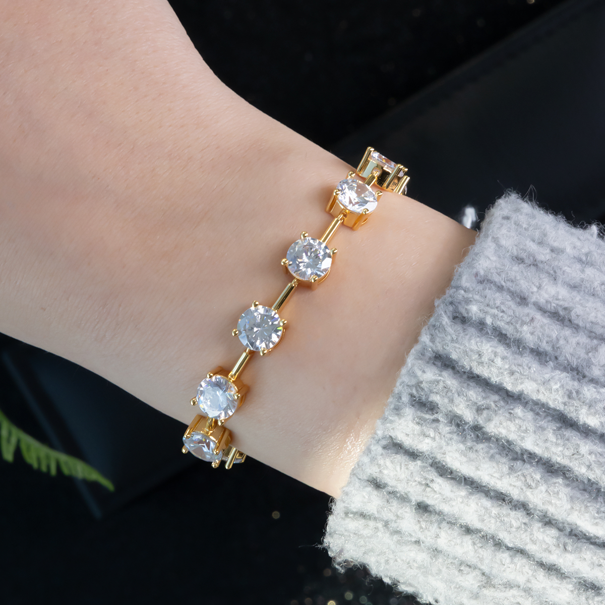 Elegant and radiant, this women’s tennis bracelet is crafted from copper and adorned with sparkling 5mm Diamondlite stones. Available in both gold tone and silver tone, its timeless line design adds brilliance and femininity to any look. Perfect for everyday elegance or special occasions, this graceful piece brings shine, sophistication, and versatility to any jewelry collection.