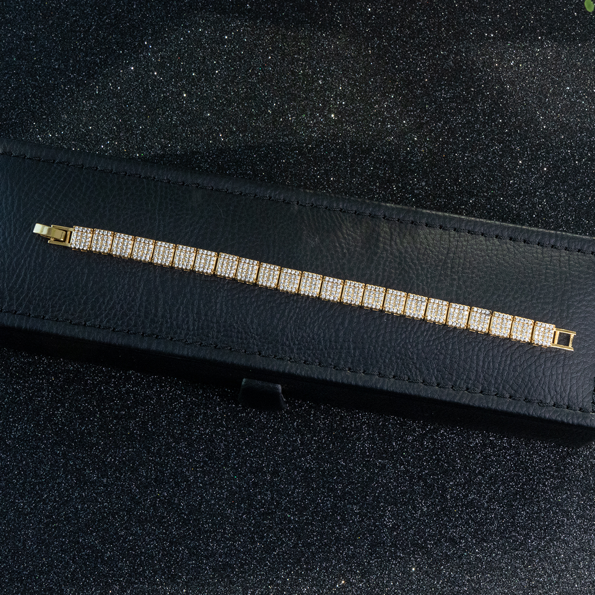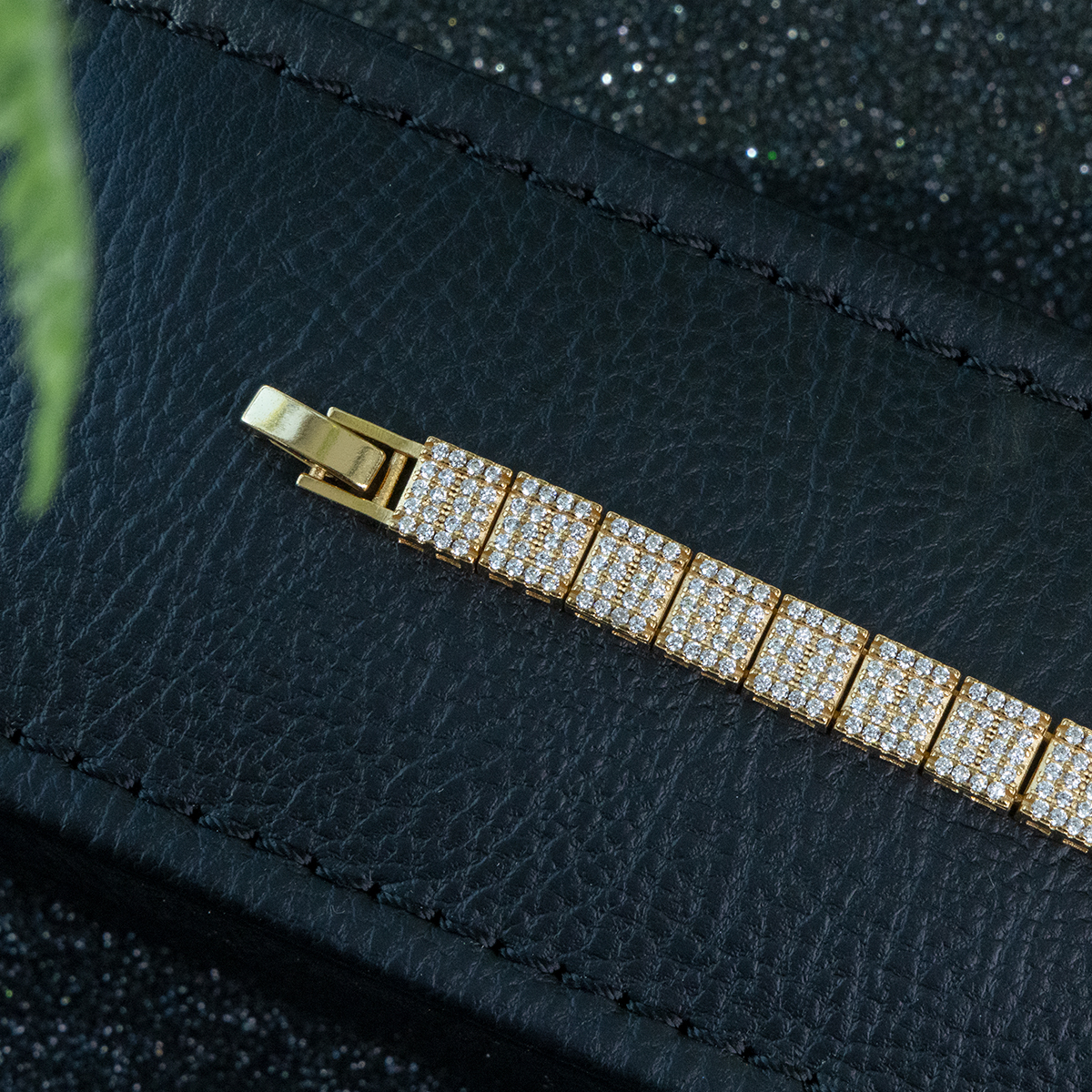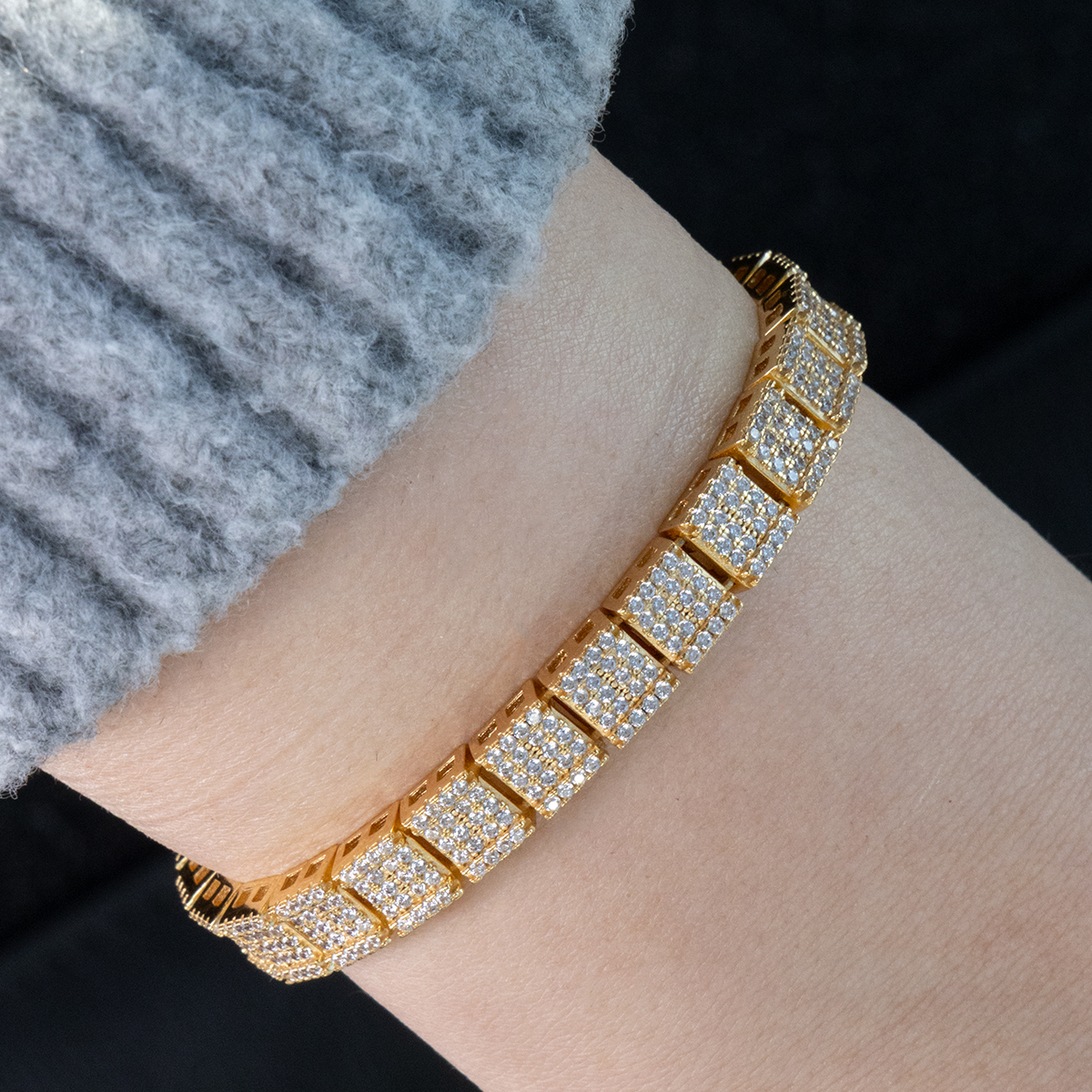 Elegant and radiant, this woman’s bracelet is crafted from copper with a luxurious gold-tone finish and adorned with sparkling Diamondlite stones. Its geometric link design creates a modern and refined look, making it perfect for everyday elegance or special occasions. A stylish jewelry piece that adds shine, sophistication, and charm to any collection.